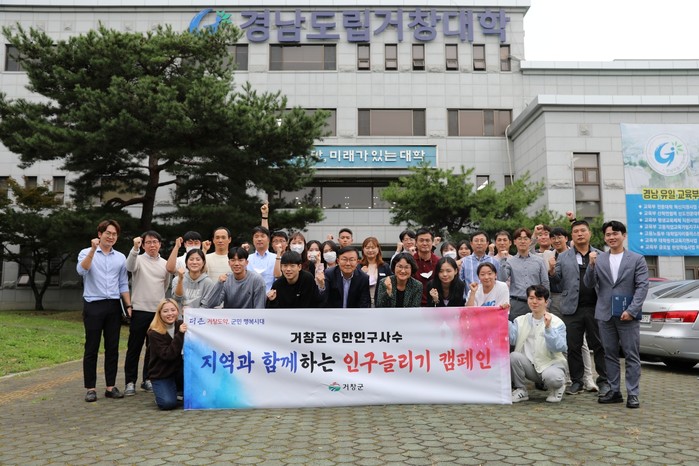 캠페인은 경남도립거창대학 사무국장, 한국승강기대학교 교학팀장, 교직원, 학생회 등 40여 명이 참여해 거창군의 ‘6만 인구 사수’를 위한 방안을 모색하고, 적극적인 참여의지를 다졌다.