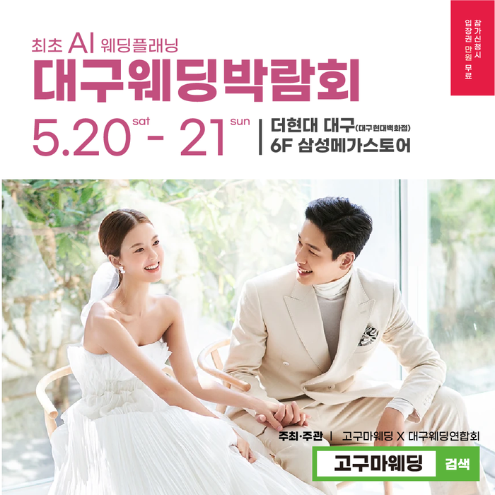 이번 더현대대구 웨딩박람회는 대구웨딩연합회와 ㈜고구마웨딩이 함께 주최하는 행사로 대규모로 열리는 만큼 많은 이벤트와 혜택이 함께 준비된다. 신혼 가전부터 가구, 혼수 등 예비부부가 이번 웨딩박람회를 통해 한 번에 결혼준비를 할 수 있도록 진행될 예정이다.