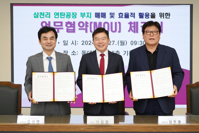 [시민일보 = 이대우 기자] 동대문구(구청장 이필형)가 최근 삼천리 연탄공장 부지 활용을 위해 ‘삼천리 연탄공장 부지의 매매 및 효율적 활용을 위한 업무협약’을 체결했다.