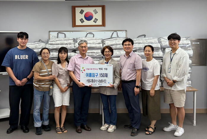 [시민일보 = 박소진 기자] 성동구(구청장 정원오) 용답동에 위치한 서울교통공사(사장 백호) 본사에서 지난 17일 지역내 저소득 취약계층이 시원하고 건강한 여름을 보낼 수 있도록 여름침구 150채를 후원했다.