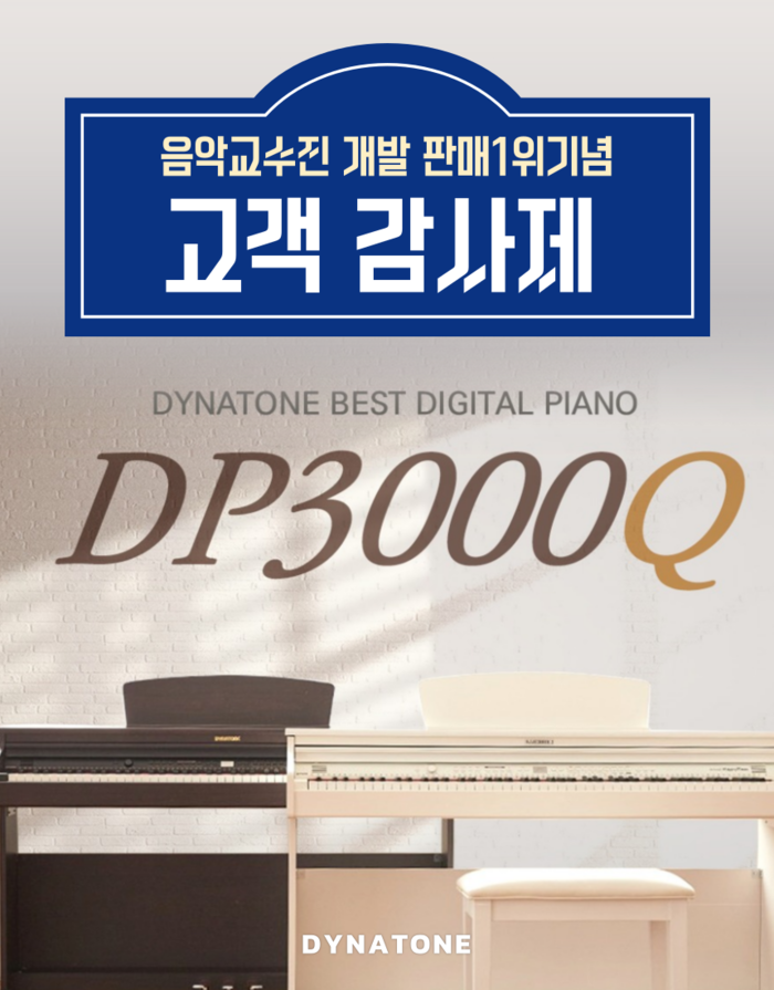 관계자는 “스마트스토어 다이나톤 본사에서 주말동안 구매하는 모든 고객에게 네이버포인트 3만원 추가적립과 피아노 연주에 필요한 풀패키지 SET를 전원 제공한다”며 “최고급형으로 NEW 업그레이드하여 깊이감을 더한 사운드와 초등교육 최고사양을 갖춘 DP3000Q는 프리미엄급 전자 디지털피아노의 완성작이 될 모델로 입문자는 물론 전공자에게 추천한다”라고 말했다.