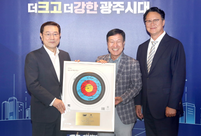 [광주=정찬남 기자] 광주광역시는 17일 오후 시장 접견실에서 대한양궁협회로부터 광주 2022 양궁월드컵의 성공적인 개최를 위한 광주시의 헌신과 열정에 대한 고마움을 담은 감사패를 전달받았다.