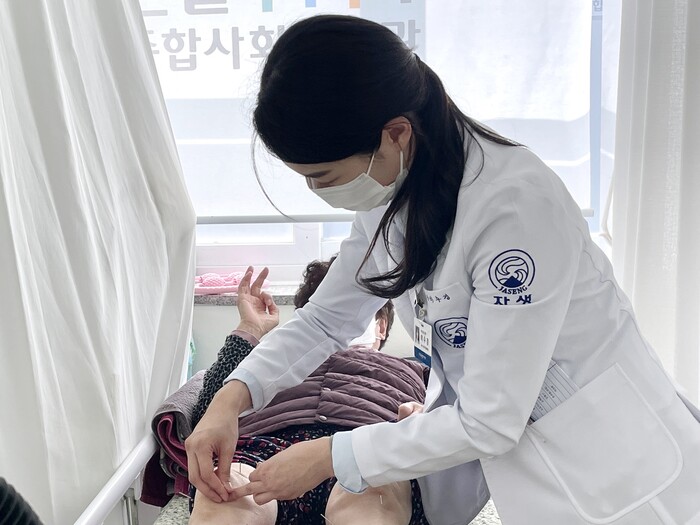 이번 분당자생한방병원의 임시진료소를 방문한 이옥순(84)씨는 "최근 척추 통증이 심해져 고생이었는데 침치료를 받으니 한결 편해졌다"며 감사의 마음을 전했다.