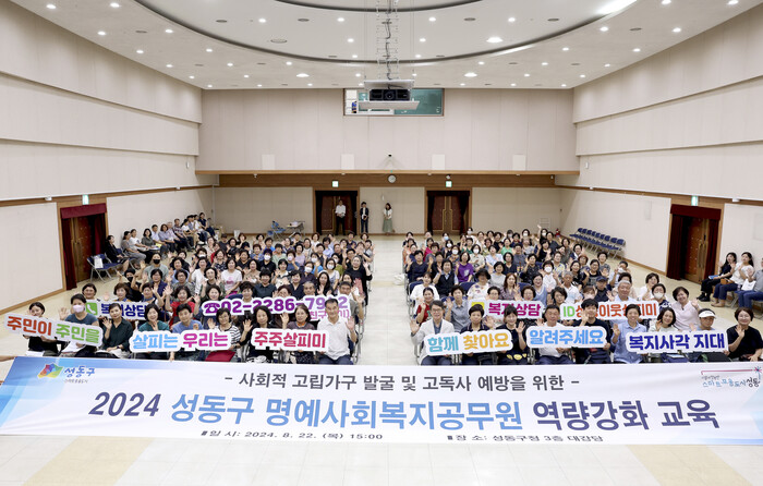 [시민일보 = 이대우 기자] 서울 성동구(구청장 정원오)는 최근 통장 및 동협의체위원 등 200여 명을 대상으로 '명예사회복지 공무원 역량강화 교육'을 실시했다.