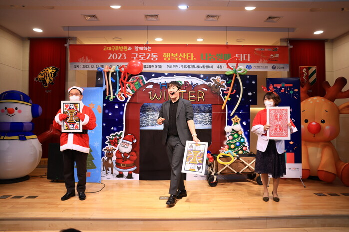 문헌일 구로구청장은 산타로 깜짝 변신했다. 문 구청장은 고려대학교 구로병원이 준비한 마술쇼에 참여해 간단한 마술을 선보였다.