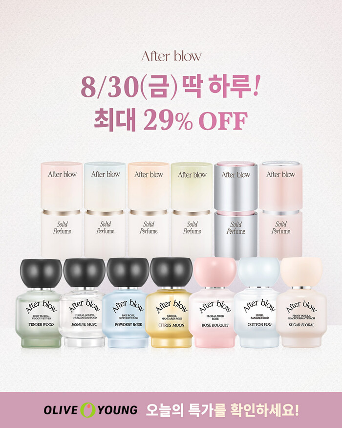 이번 올영 세일에서 애프터 블로우는 오 드 퍼퓸, 솔리드 퍼퓸과 퍼퓸 핸드크림 전 제품을 최대 36%까지 할인할 계획으로 많은 소비자들의 기대감을 모으고 있다.