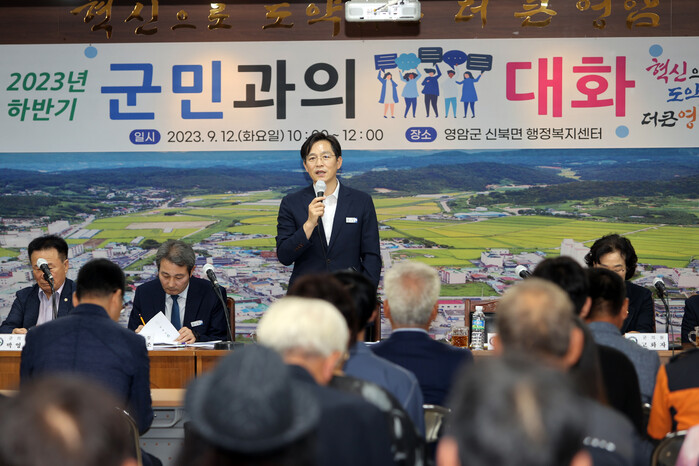 올해 두 번째로 열린 이번 군민과의 대화에는 지역주민, 전남도·영암군의회 의원을 포함한 각계각층이 참석했다. 이들은 민선 8기 1년간의 영암군정 추진현황과 주요 군정현안을 들으며, 군 재건 핵심 가치 등을 공유했다.