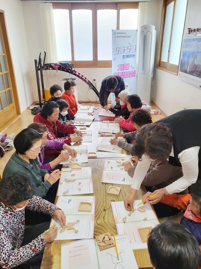‘알콩달콩 함께하는’ 치매예방교실은 읍·면지역 주민들에게 치매 예방과 사회적 활동 및 교류 기회를 제공하고 인지기능을 강화하기 위해 운영하는 프로그램으로 함양읍과 서상면에서 진행하고 있다.
