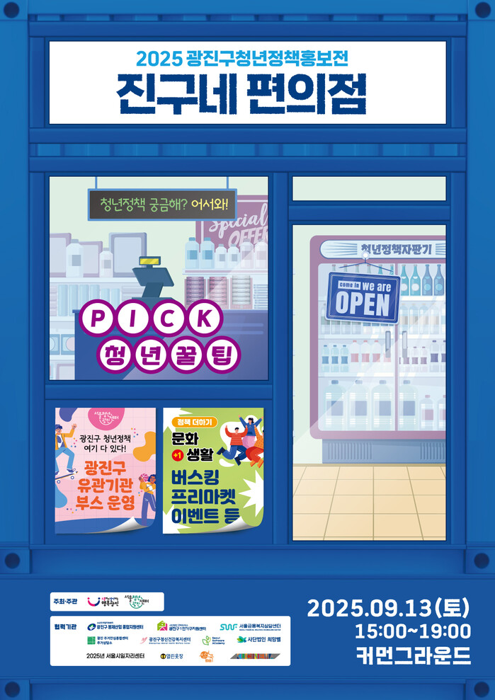 구는 이 같은 취지를 반영해 올해는 청년들이 자주 찾는 건대 커먼그라운드에 정책과 문화를 연계한 특별한 체험의 장을 마련한다. ‘진구네 편의점’이라는 독특한 주제 아래, 편의점에서 물건을 고르듯 필요한 정책을 쉽고 편리하게 접할 수 있도록 기획했다.