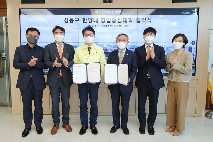 [시민일보 = 홍덕표 기자] 서울 성동구(구청장 정원오)는 최근 한양대학교와 함께 지역내 청년창업을 적극 지원하기 위한 양해각서(MOU)를 체결했다.