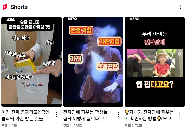 보건소는 첫 영상으로 ‘청소년 전자담배’ 관련 콘텐츠를 공개했다. 해당 영상은 부모님들이 자녀의 전자담배 사용 여부를 확인하는 방법, 전자담배의 위험성, 보건소에서 제공하는 지원 서비스 등을 짧고 간결하게 제공하고 있다.
