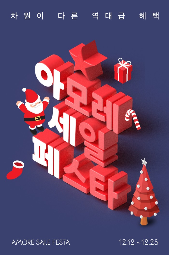 기획 상품으로는 아모레몰 크리스마스 어드벤트 캘린더를 한정 수량으로 선보인다. 뷰티, 헤어, 티, 건강기능식품 등의 아모레퍼시픽 대표 상품들로 구성한 캘린더는 5만원 이상 제품 구매 시 선착순으로 구매 가능하다.