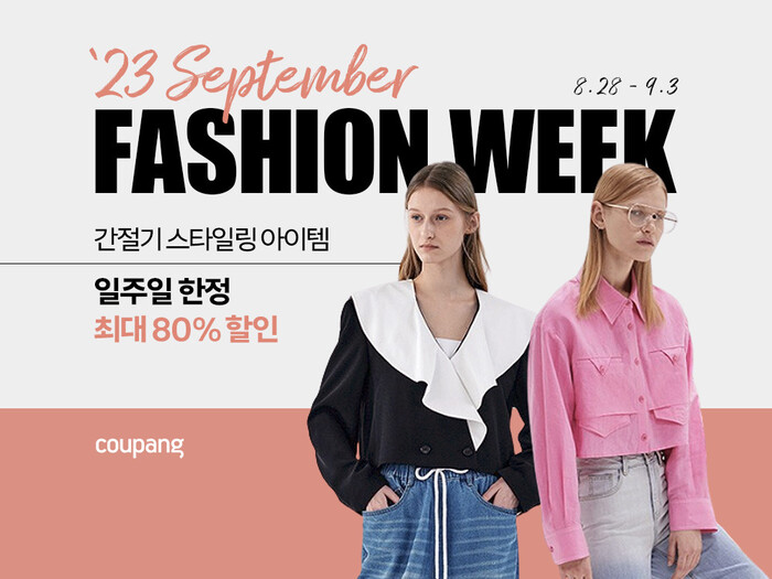 [시민일보 = 홍덕표 기자] 쿠팡이 28일부터 오는 9월3일까지 최대 80% 할인하는 ‘9월 패션위크’를 통해 간절기 패션 아이템을 제안한다.