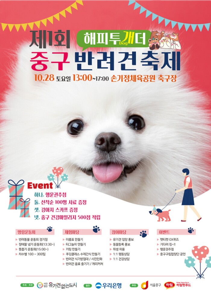 [시민일보 = 여영준 기자] 서울 중구(구청장 김길성)에서 오는 28일 반려견과 함께하는 제1회 ‘중구 해피투개(dog)더’ 축제가 열린다.