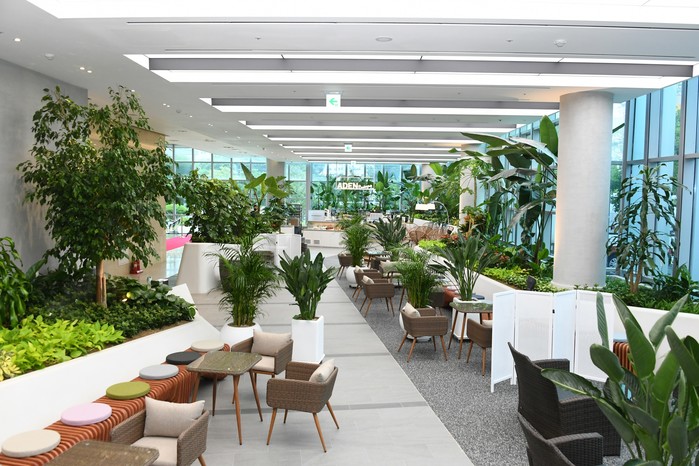 내부는 열대식물인 야자나무, 바나나나무, 알로카시아, 몬스테라 등 50여종의 식물과 80여석의 좌석이 배치됐다.