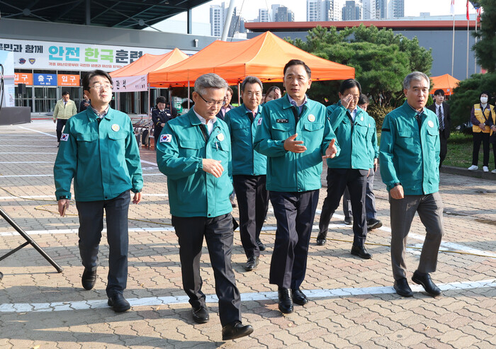 | ▲ 지난해 10월23일 강남구 안전한국훈련에 참석한 조성명 구청장이 관계자들과 현장을 둘러보고 있다. (사진=강남구청 제공) |