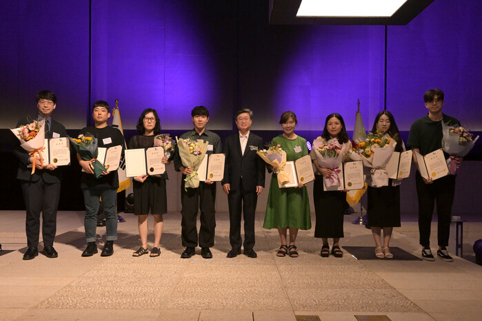 중구가 지난 20일 오후 4시 서소문성지 역사박물관 콘솔레이션 홀에서 ‘제25회 사회복지의 날’ 기념행사를 개최했다. 이날 표창을 받은 사회복지 유공자는 후원자, 사회복지기관 종사자, 공무원 등 총 25명이다. 사진은 김길성 구청장(가운데)이 사회복지 유공자들과 기념촬영을 하고 있는 모습. (사진=중구청 제공)