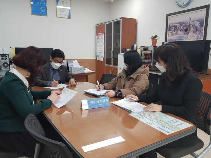 경기 동두천시 송내동행정복지센터 맞춤형복지팀이 최근 신규 사례관리 대상자 선정 등을 위한 내부 사례회의를 열고 미혼모자가족시설에서 퇴소한 모자가구의 기초생활보장 등 공적부조 연계 및 일상생활 영역의 지원을 위한 방안 등을 논의했다. 사진은 이날 회의가 진행되고 있는 모습. (사진제공=동두천시청)
