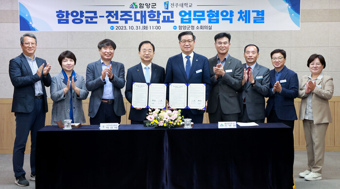 이날 협약식은 진병영 함양군수, 박진배 전주대학교 총장을 비롯한 두 기관의 실무 관계자가 함께 참석해 앞으로의 상호협력방안에 대해 논의했다.