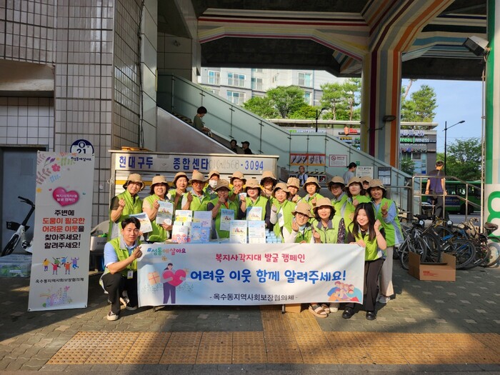 [시민일보 = 이대우 기자] 서울 성동구(구청장 정원오) 옥수동은 최근 동 지역사회보장협의체 주관으로 옥수역 4번 출구에서 위기가구 발굴을 위한 민·관협력 복지사각지대 발굴 캠페인을 실시하였다.