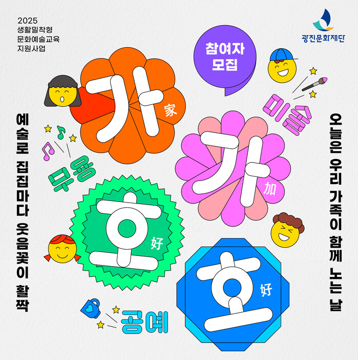 ‘가가호호’는 다양한 가족유형이 나타남에 따라 건강한 가족여가문화를 조성하기 위해 올해 처음 마련한 사업이다. 한국문화예술교육진흥원에서 주관하며 광진문화재단이 공모에 선정돼 사업비 4000만원을 확보했다. 일상 속 문화예술교육 지원으로 가족 간 소통을 활성화하고 지역?세대 간 문화격차를 해소한다.