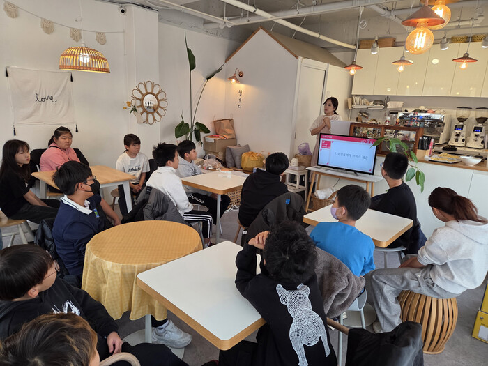 이날 학생들은 반죽 도구와 제빵 기구를 활용해 다양한 모양의 쿠키를 직접 만들어보는 실습 프로그램을 진행했으며, 카페 운영인의 설명을 통해 제빵 과정뿐 아니라 매장의 운영 방식, 손님 응대, 재료 관리 등 실제 직업 현장의 이야기를 배워보는 시간도 가졌다.