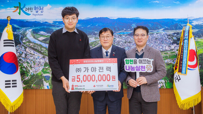 한편, 합천군은 2025년 12월 1일부터 2026년 1월 31일까지 희망2026나눔캠페인 이웃돕기 성금 집중 모금 기간을 운영하고 있으며 기탁받은 성금은 경남사회복지공동모금회를 통해 관내 어려운 이웃에 지원할 계획이다.