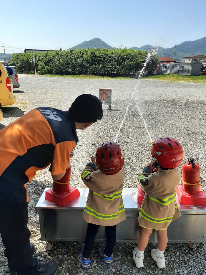 이번 교육은 어린이집 마당에서 진행됐으며 소화기 사용법, 심폐소생술 교육, 화재 발생 시 대피방법, 화재진압 등을 체험했다.