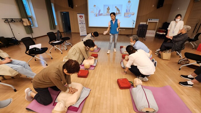 또한 올해는 동주민센터 복지플래너, 보건소 방문간호사, 세곡119안전센터 및 선한사마리아인운동본부 응급구조사 등이 협업해 오는 18일과 19일 두 차례에 걸쳐 교육을 실시한다. 심정지 사례 및 심폐소생술의 중요성을 알리고, 교육용 인체 모형을 활용한 가슴압박술, 자동심장충격기(AED) 사용법 등을 실습한다. 이를 통해 어르신들의 응급상황 대처 능력을 향상시키고 안전사고에 대한 인식을 높이는 것이 목적이다. 회장단 교육을 마치면 향후 세곡·자곡문화센터 이용자 중 희망자를 대상으로 교육을 확대하는 방안도 검토할 예정이다.