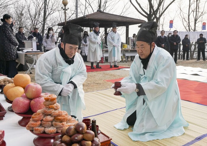 | ▲ 지난해 인왕산에서 제를 올리는 정문헌 종로구청장의 모습 (사진=종로구청 제공) |