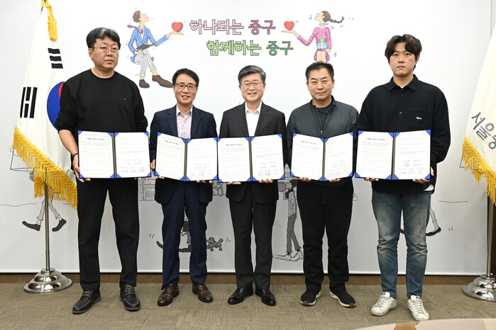 [시민일보 = 여영준 기자] 서울 중구(구청장 김길성)는 지난 10일 명동 새마을금고 및 럭키하이마트(회현동), ㈜햇빛촌마트(중림동), ㈜태양유통(약수동)과 업무협약을 맺고 취약계층에게 식료품과 생활용품을 지원하는 시범사업을 진행한다고 11일 밝혔다.