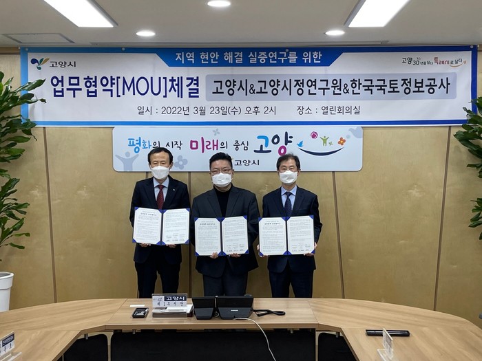 이 3자는 3월 23일 고양시청에서 「공간정보 실증연구를 위한 상생협력 업무협약」을 체결했다.