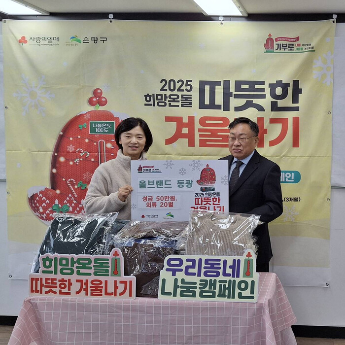 [시민일보 = 이대우 기자] 은평구(구청장 김미경) 응암3동은 지난 19일 주식회사 올브랜드 동광이 희망온돌 따뜻한 겨울나기 성금·품을 전달했다고 밝혔다.