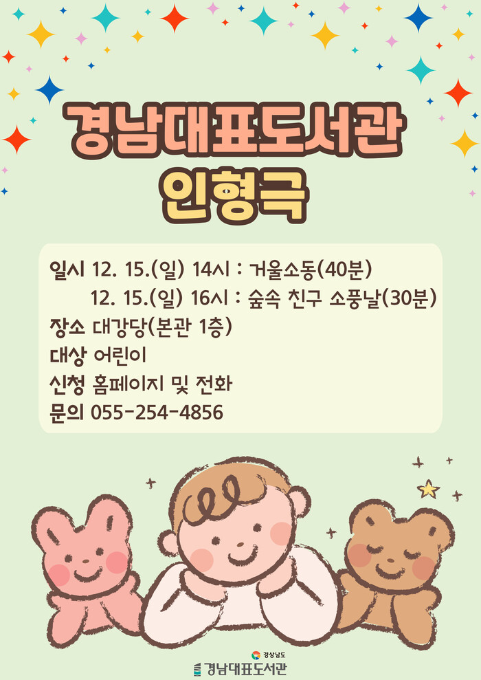 [창원=김점영 기자] 경남대표도서관이 연말을 맞아 어린이와 가족들을 위한 특별한 문화 프로그램을 운영한다고 밝혔다.