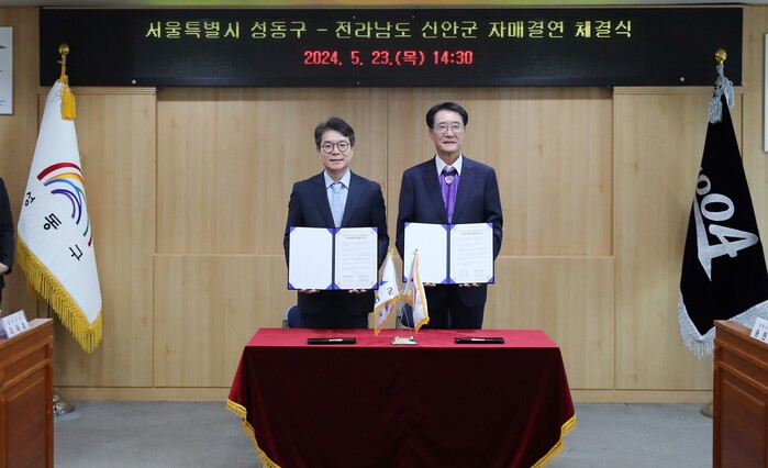 [시민일보 = 변은선 기자] 성동구(구청장 정원오)가 최근 구청에서 전남 신안군과 자매결연 협약을 체결했다.