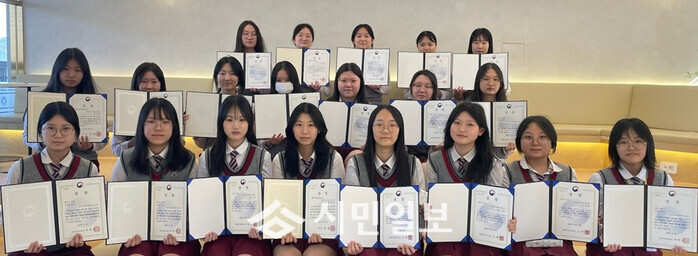 | ▲ 전남여상, 국세청 주관 세금 공모전서 20명 입상 ‘성과’ 기념촬영 / 광주광역시교육청 제공 |