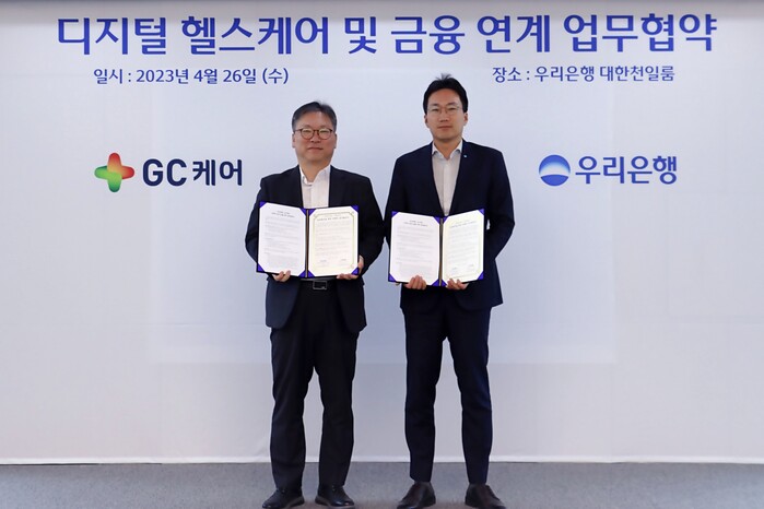 이날 협약식은 옥일진 우리은행 디지털전략그룹장과 안효조 GC케어 대표이사 등 양사의 주요 관계자가 참석한 가운데, 금융과 헬스케어 플랫폼 서비스를 기반으로 한 디지털 신사업 기회 공동 발굴 등의 지속적인 상호 협력을 하기로 했다.