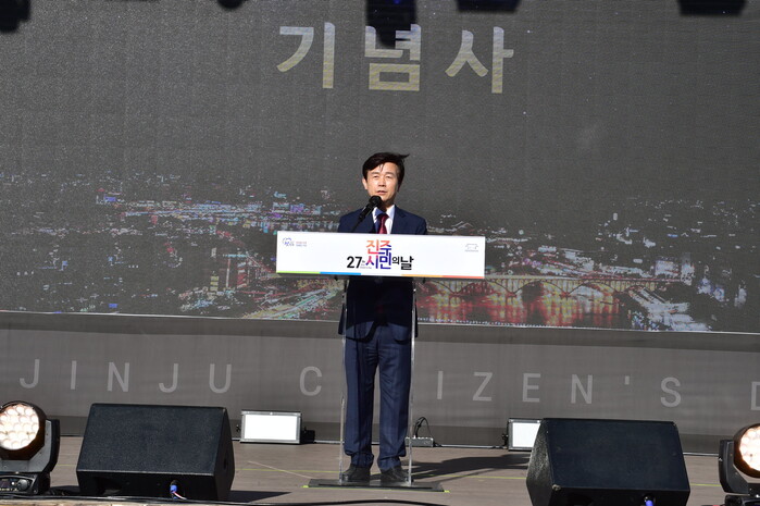 이날 행사는 2500여 명의 시민이 칠암동 남강야외무대 일원에 모인 가운데 시립국악관현악단과 댄스 공연 등 식전행사를 시작으로 시민헌장 낭독, 시민상 시상, 기념사, 축사, 시민의 노래 제창 등 공식 기념식, 대중가수 공연 등 식후행사, 읍면동 합동농악놀이 순으로 진행된다.