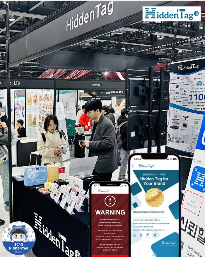 히든태그는 이번 2025 서울 인디 뷰티쇼에 출품하며 압도적인 보안성과 가품 방지 기술의 차별점과 강점 등을 소개했다. 히든태그는 LABEL, APP, DATA 3가지 요소로 구성돼 있으며 독자적인 암호화 패턴과 자체 개발 데이터를 통해 강력한 보안을 완성했다고 업체 측은 설명했다.