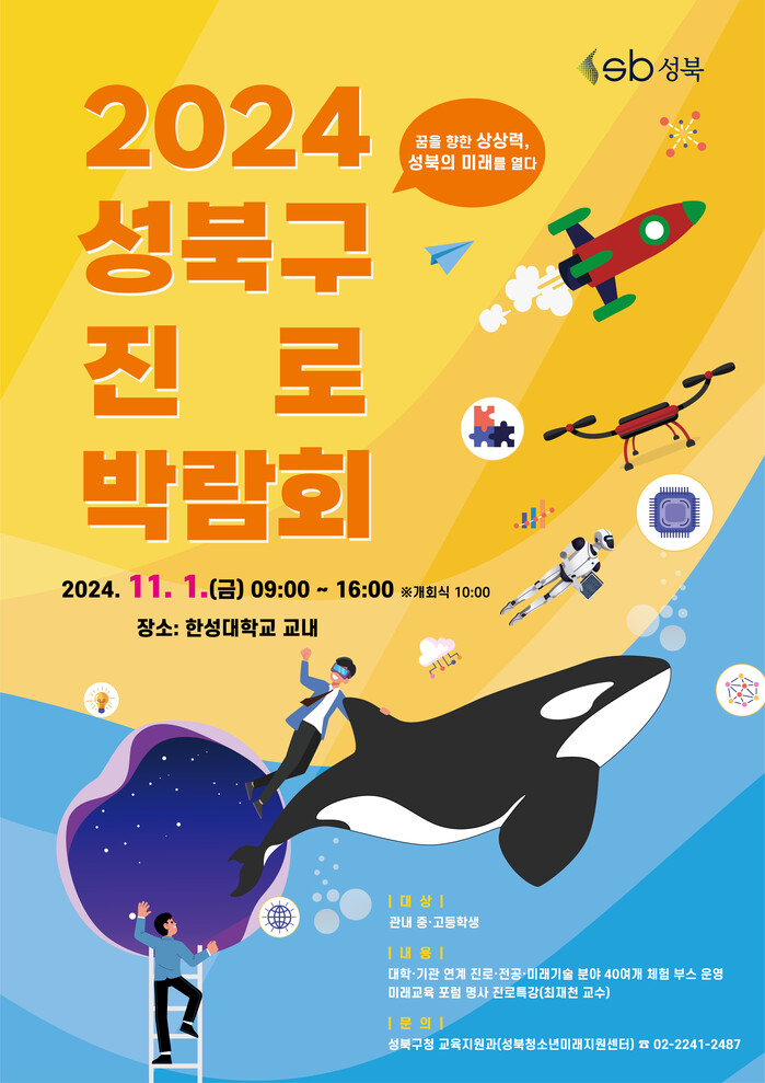 [시민일보 = 문민호 기자] 성북구(구청장 이승로)가 11월 1일(금요일) 오전 9시부터 오후 4시까지 한성대학교 교내에서 중·고등학생 대상 '2024 성북구 진로박람회'를 개최한다.