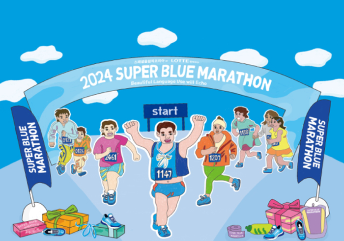 디스에이블드 소속 작가 신동민은 슈퍼블루마라톤의 상징인 파란색 운동화 끈을 묶고 달리는 다양한 인물들을 그려냈다.