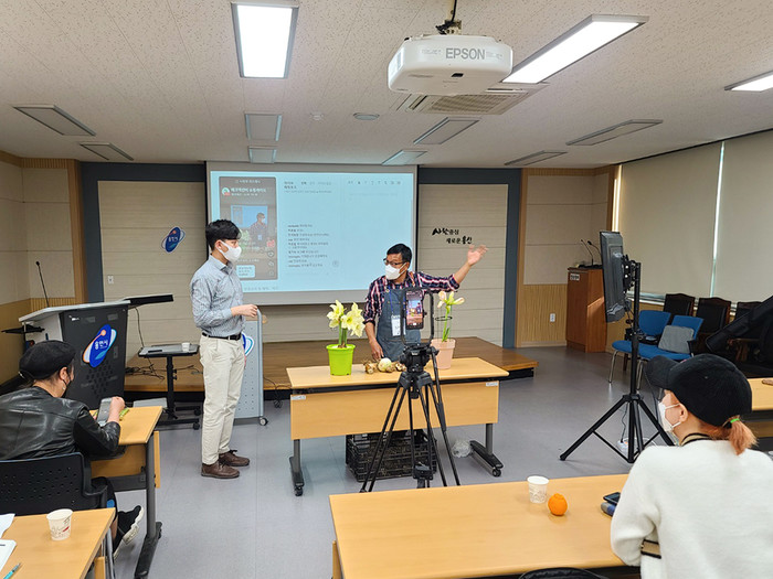 | ▲ . 라이브커머스에 앞서 실전 교육을 진행하고 있는 모습 |