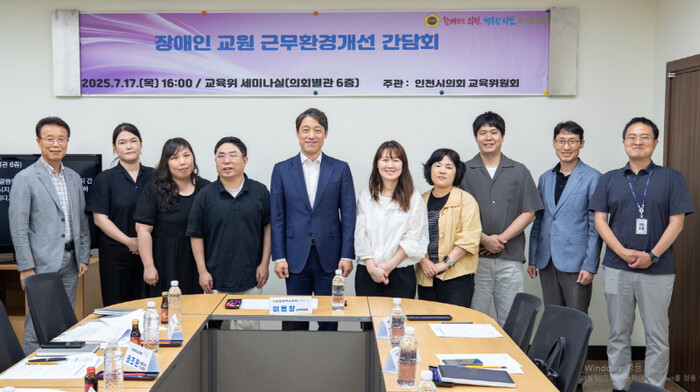| ‘장애인 교원 근무 환경 개선을 위한 간담회’ 참가자들이 포즈를 취하고 있다. (사진=인천시의회) |