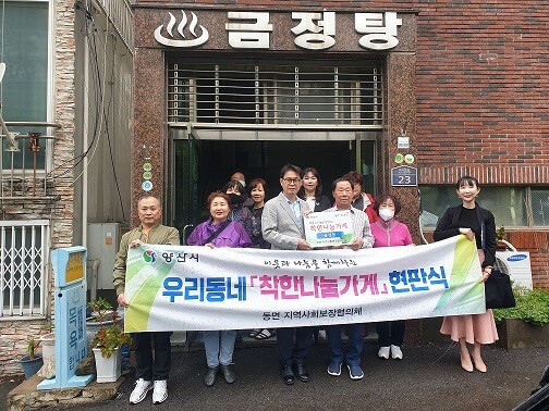 착한나눔가게란 매월 일정 액수를 공동모금회를 통해 기부하고 나눔을 실천하는 가게를 말한다. 모금된 금액은 동면사회보장협의체를 통해 지역 저소득 취약계층을 위한 복지 사업에 사용된다.