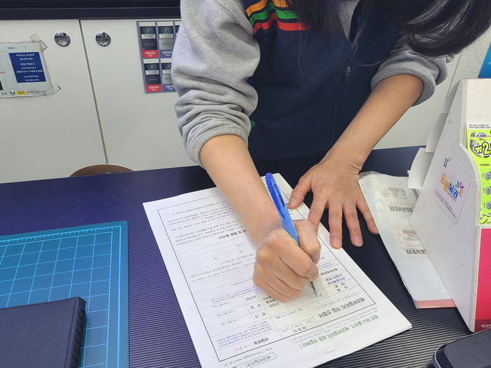 | ▲ 소매점 관계자들이 에코마일리지 사용 신청서를 작성하고 있다. (사진제공=도봉구청) |