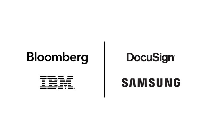 | ▲ 삼성전자와 폴더블 파트너십을 맺은 블룸버그, 도큐사인, IBM의 기업 이미지 로고.(사진제공=삼성전자) |