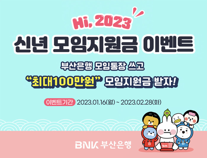 [시민일보 = 여영준 기자] BNK부산은행은 오는 2월28일까지 'Hi 2023, 신년 모임지원금 이벤트'를 실시한다고 16일 밝혔다.