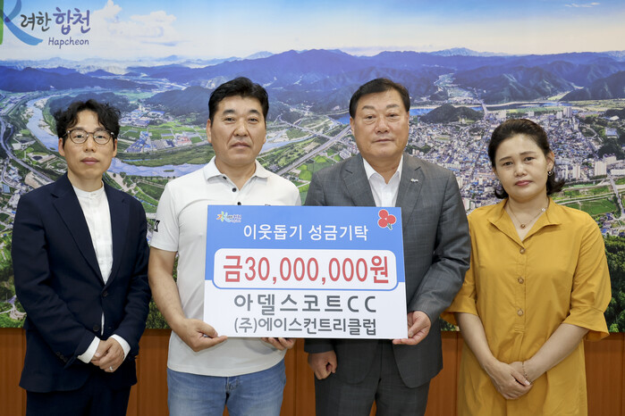 김윤철 합천군수는 “매년 어려운 이웃들을 위해 거액의 후원금을 기탁해 주시는 아델스코트 컨트리클럽에 감사드리며, 기탁된 성금은 도움이 필요한 취약계층을 위해 소중히 사용하겠다”고 말했다.