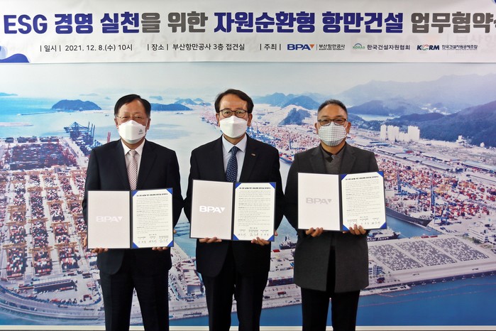 부산항만공사(BPA, 사장 강준석)는 폐기물 한국건설자원협회 및 한국건설자원공제조합과 폐기물 감축 및 건설자원 재활용 활성화를 위한 ‘ESG 경영 실천을 위한 자원순환형 항만건설 업무협약’을 체결했다고 8일 밝혔다.