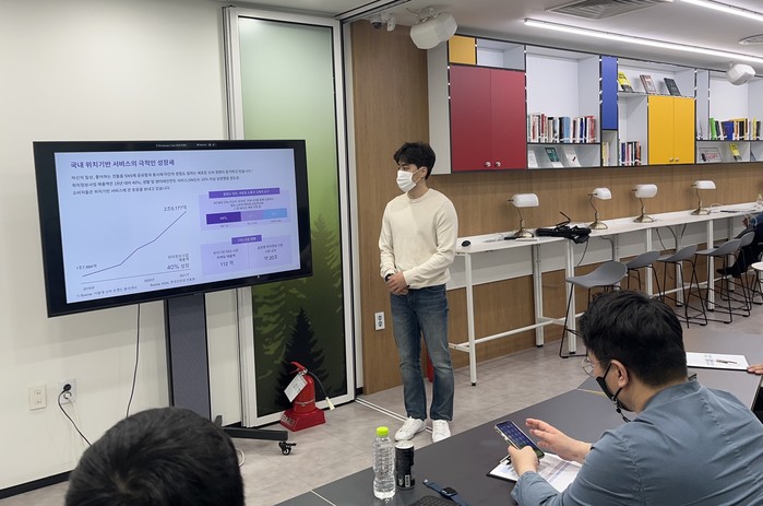 | ▲ 지난 19일 청년 참가자가 서울창업카페 낙성대점에서 피칭데이 IR 발표를 하고 있는 모습. (사진제공=관악구청) |